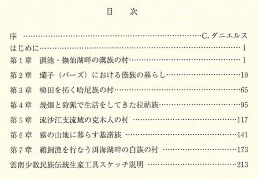 中国雲南省に居住する少数民族が農業、漁業などに使用する道具を、部族ごとに図・写真に写し採寸。記録された道具から各部族の居住地域の特徴を探り、激変する中国社会に生きる少数民族の未来を考察する。 |